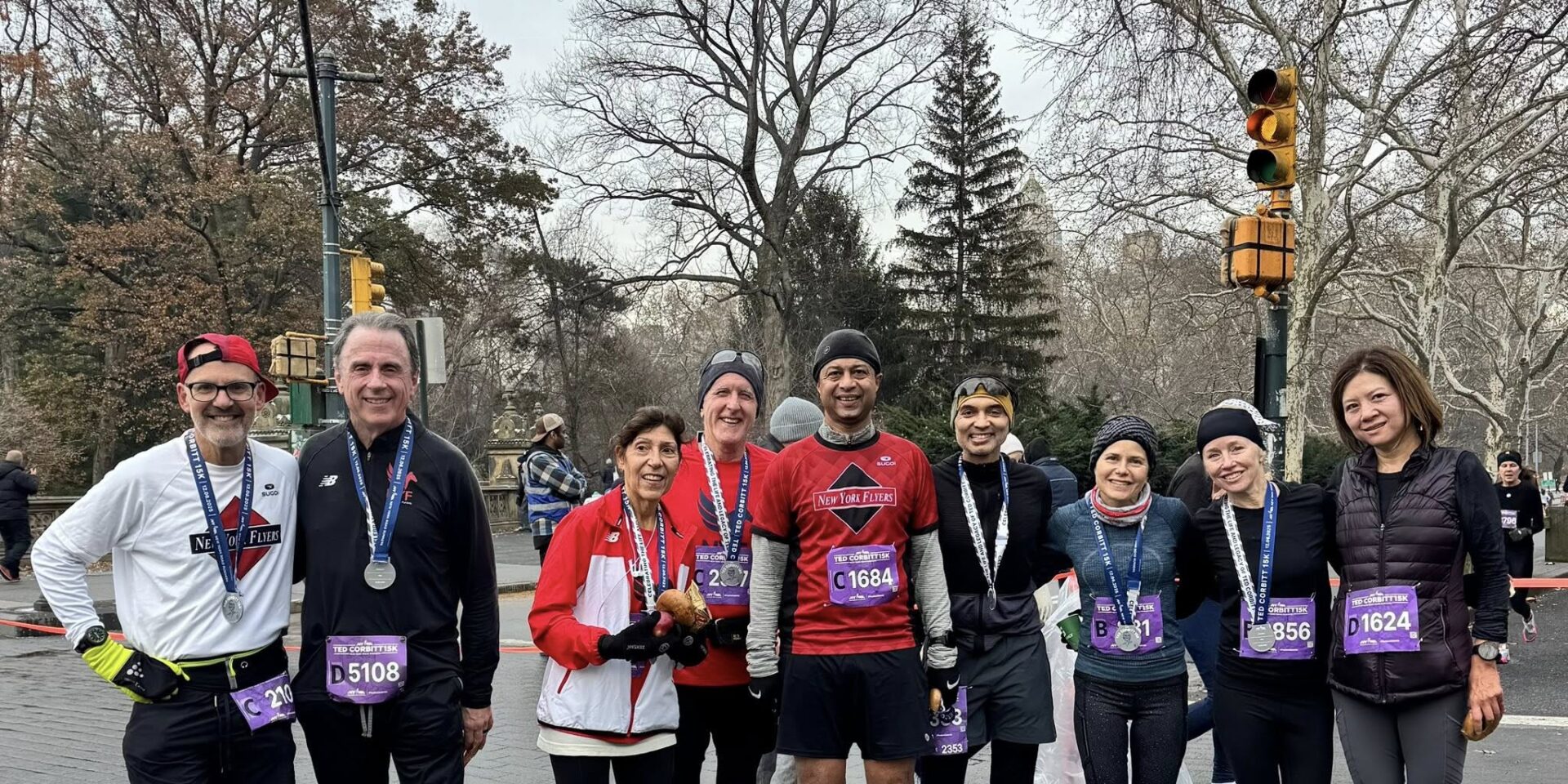 And now back to the race! After some snow flurries, 4,121 finishers ran this popular race, which takes runners twice along Central Park’s aptly named Ted Corbitt Loop, in celebration of the legacy of running legend Ted Corbitt. 61 Flyers joined the race – and what a glorious day it was for our team, full of awards and PRs! Congrats to all the runners!